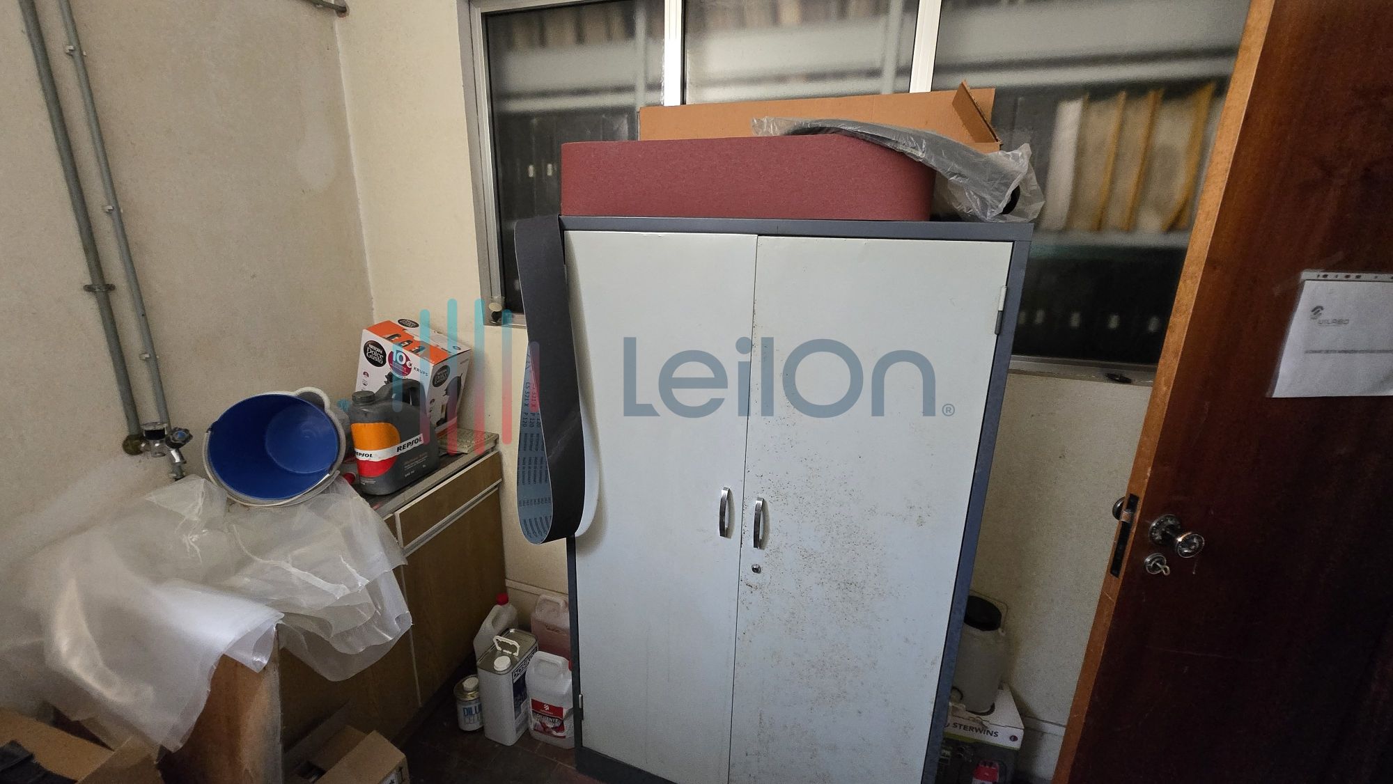 1 armário de 2 portas, 1 móvel de arquivo de 4 gavetas, restos de material (lixas, produtos químicos).
