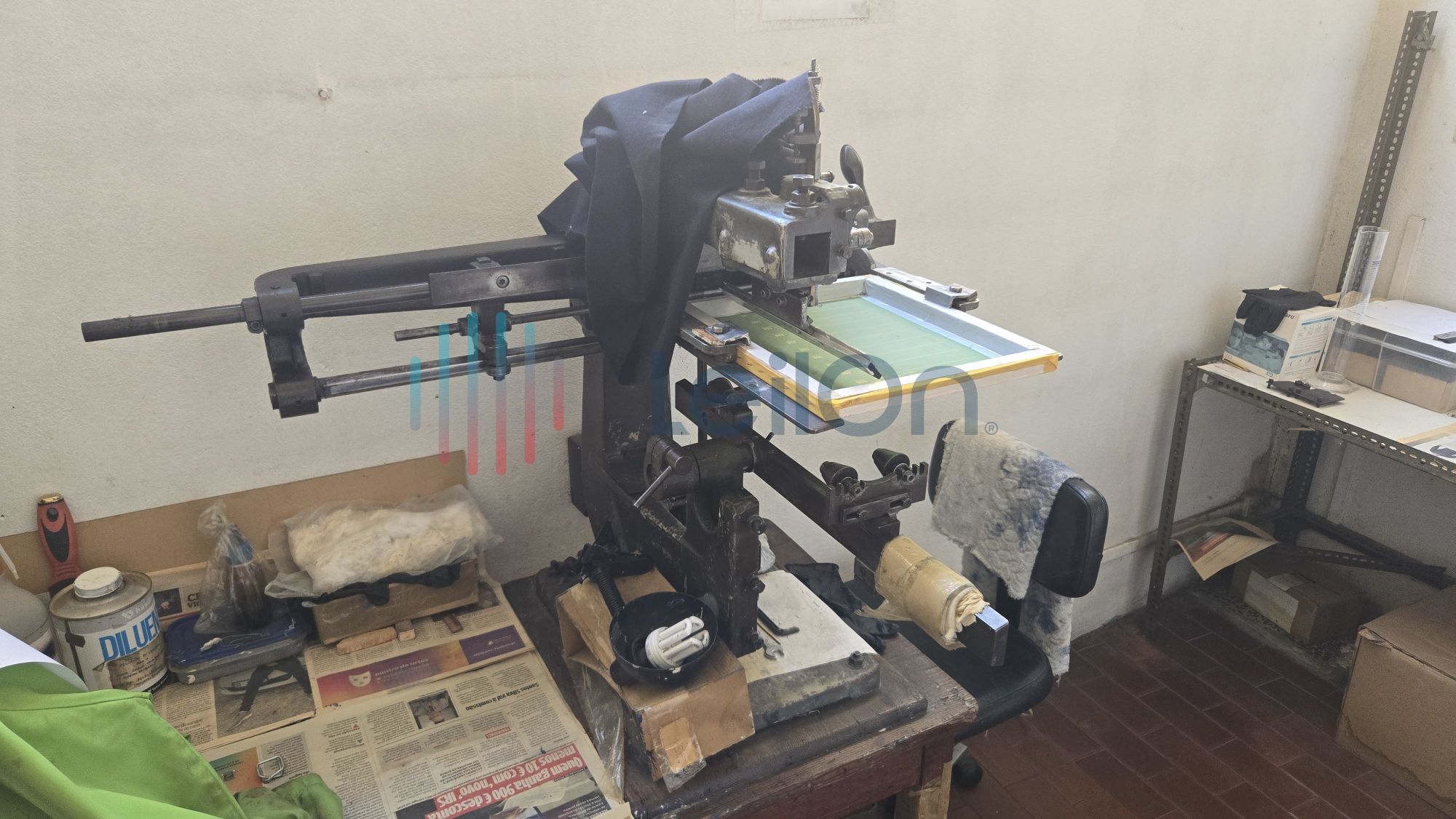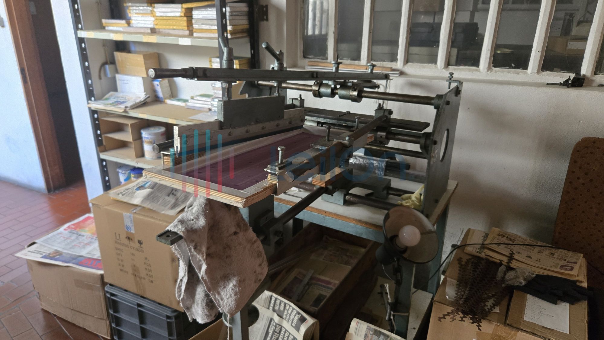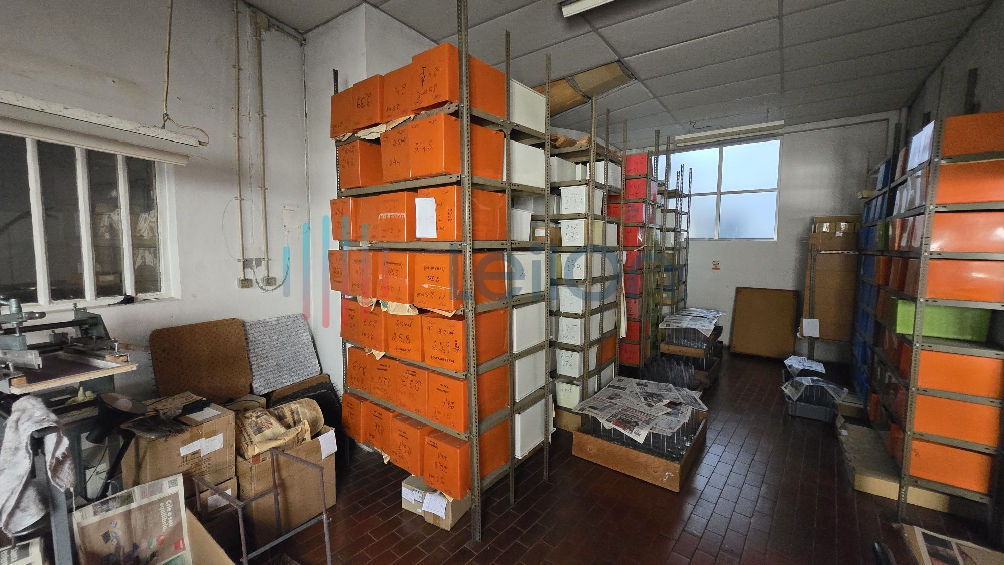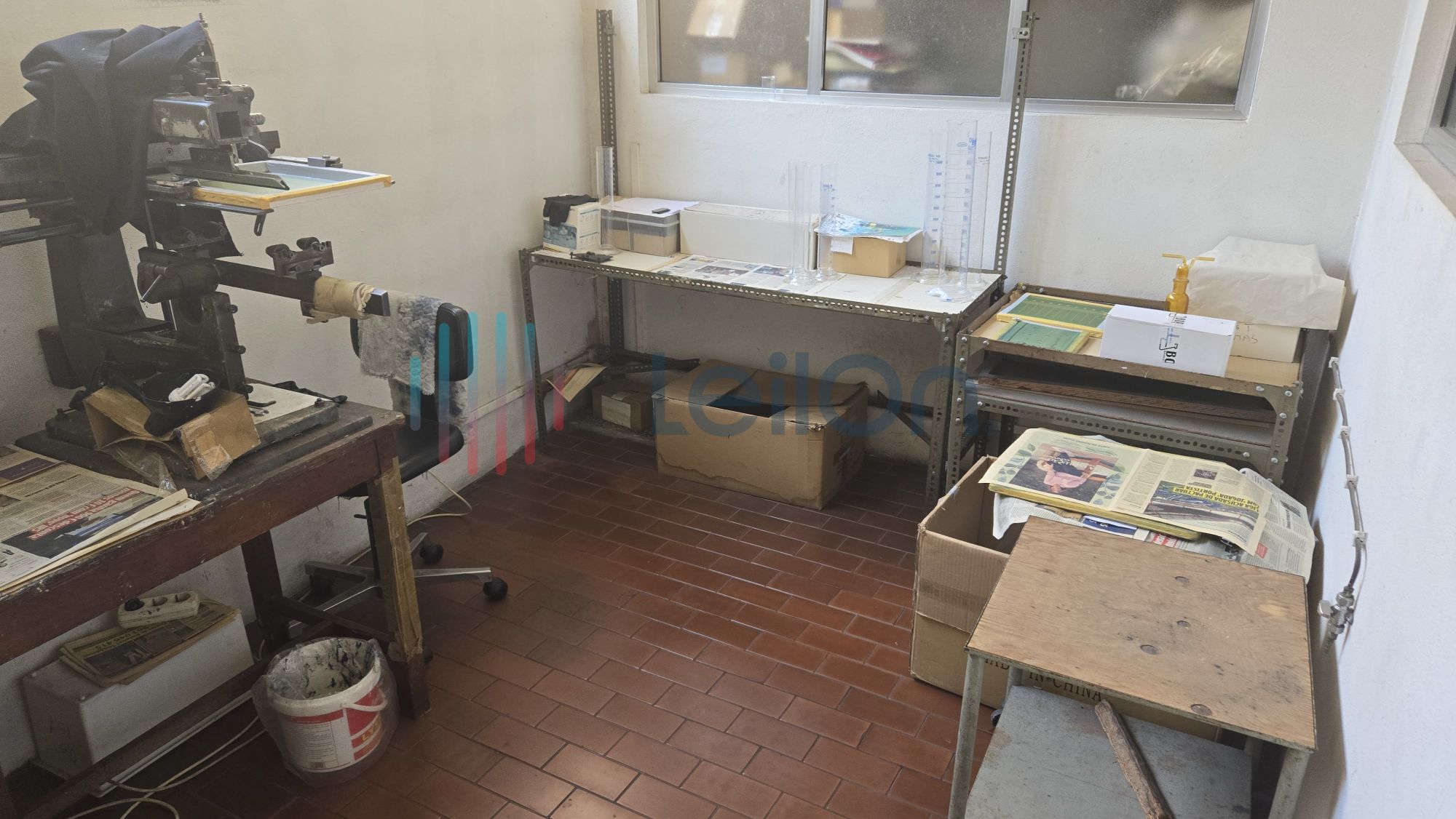 Diversos armários em DEXIA (6); 3 máquinas de estampar vidro, 1 máquina de marcação (faz traços no vidro), 1 lote de produto semiacabado (falta cozedura).