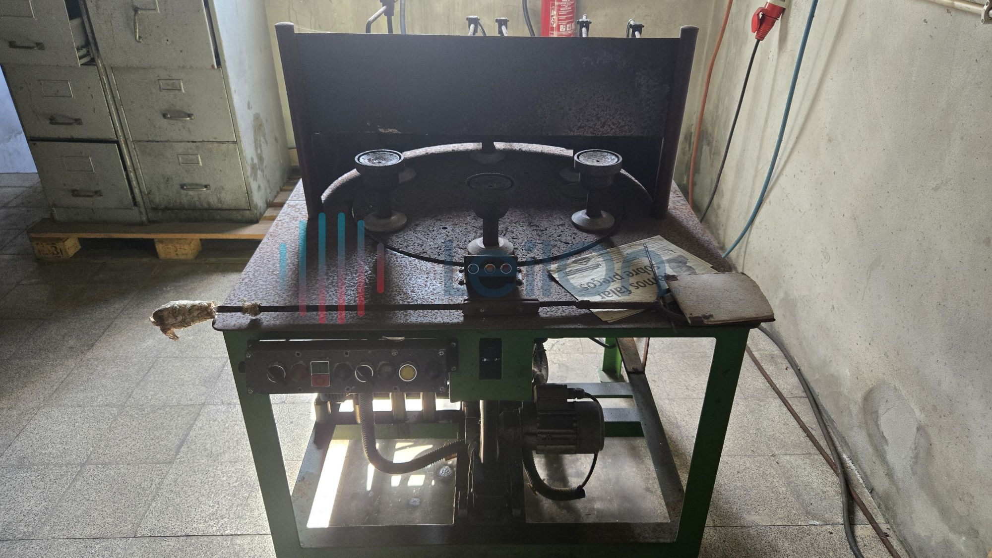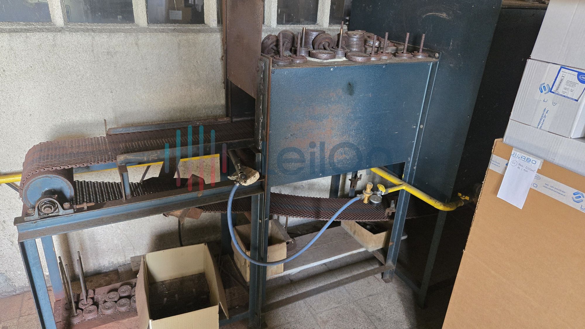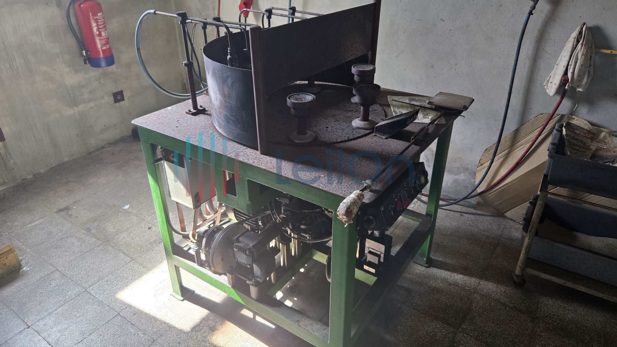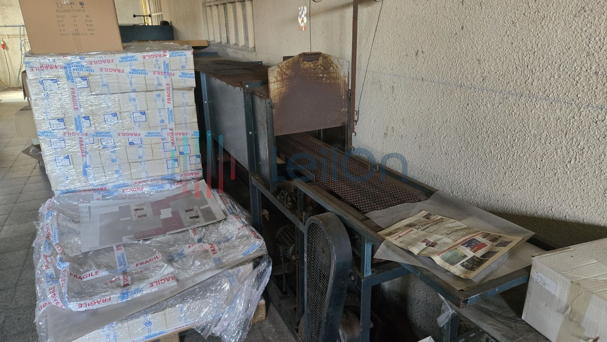 1 móvel de arquivo de 6 gavetas; 1 máquina de fazer tampas da marca “BOTTENFELD”; 1 máquina de afinar rodos da marca “LAHOZ”; 1 máquina de recozer balões volumétricos da marca “I.M.V.” do ano 2000; 1 mesa; 1 minicontentor de lixo; cerca de 36 metros de estantes; Lote com diverso material: 1 arca de recozimento cerca 10 mts.), 1 máquina de fazer pratos e vidros de relógio; 2 móveis de arquivo de 4 gavetas.