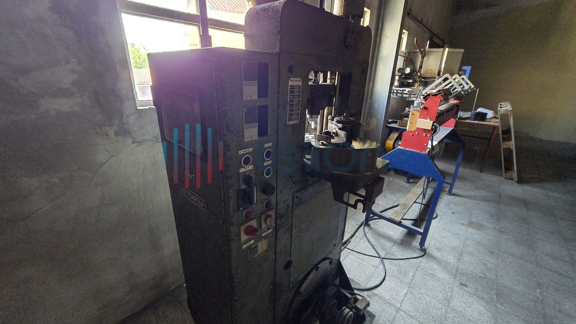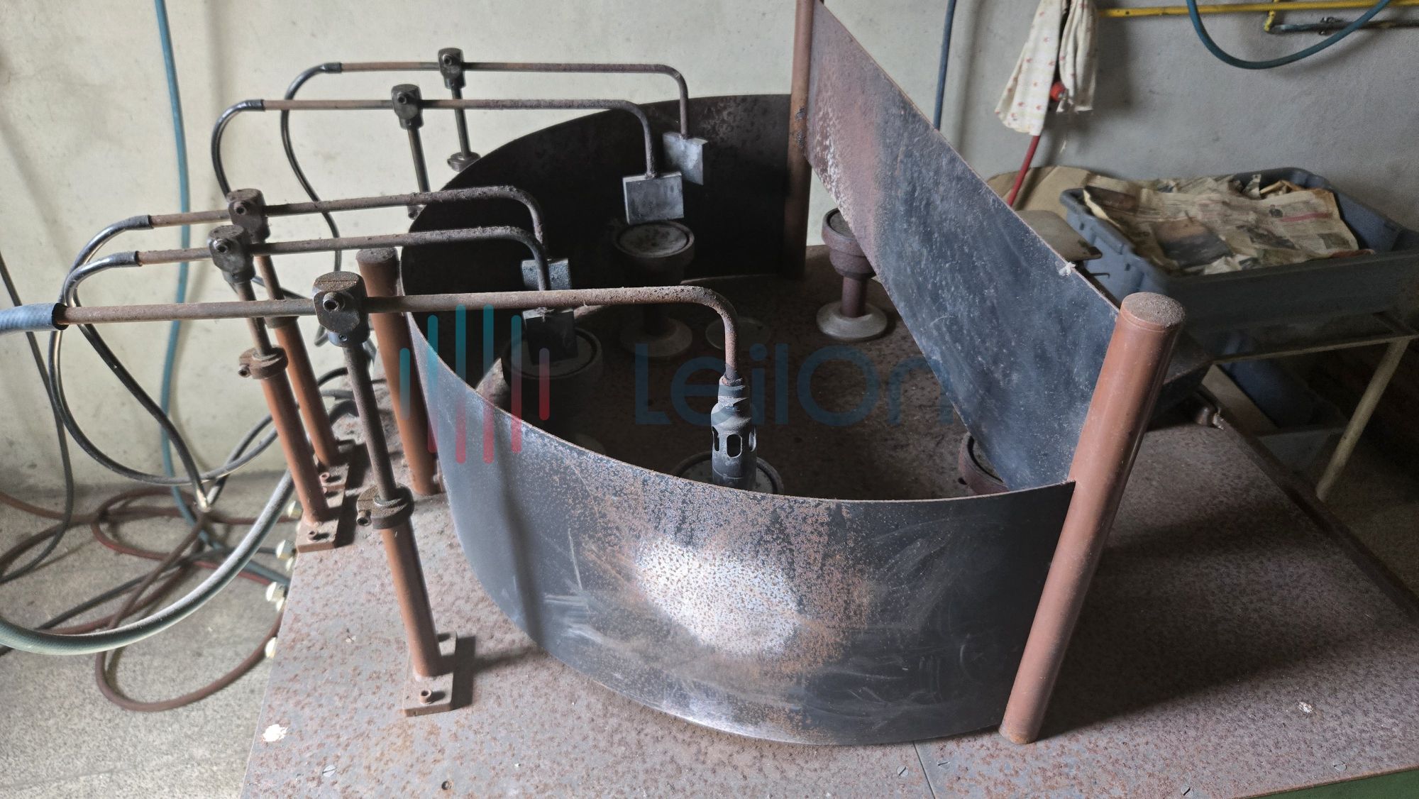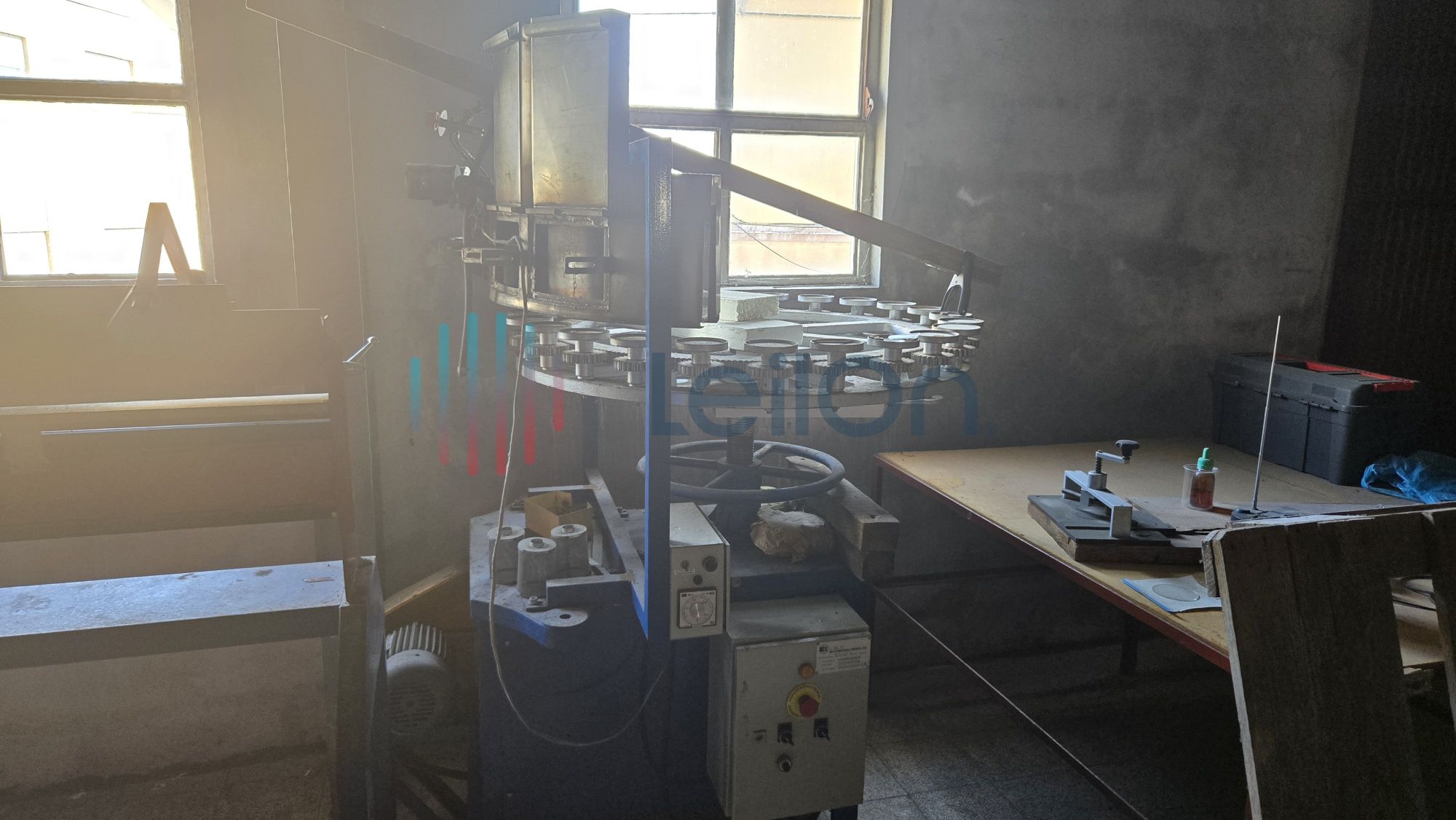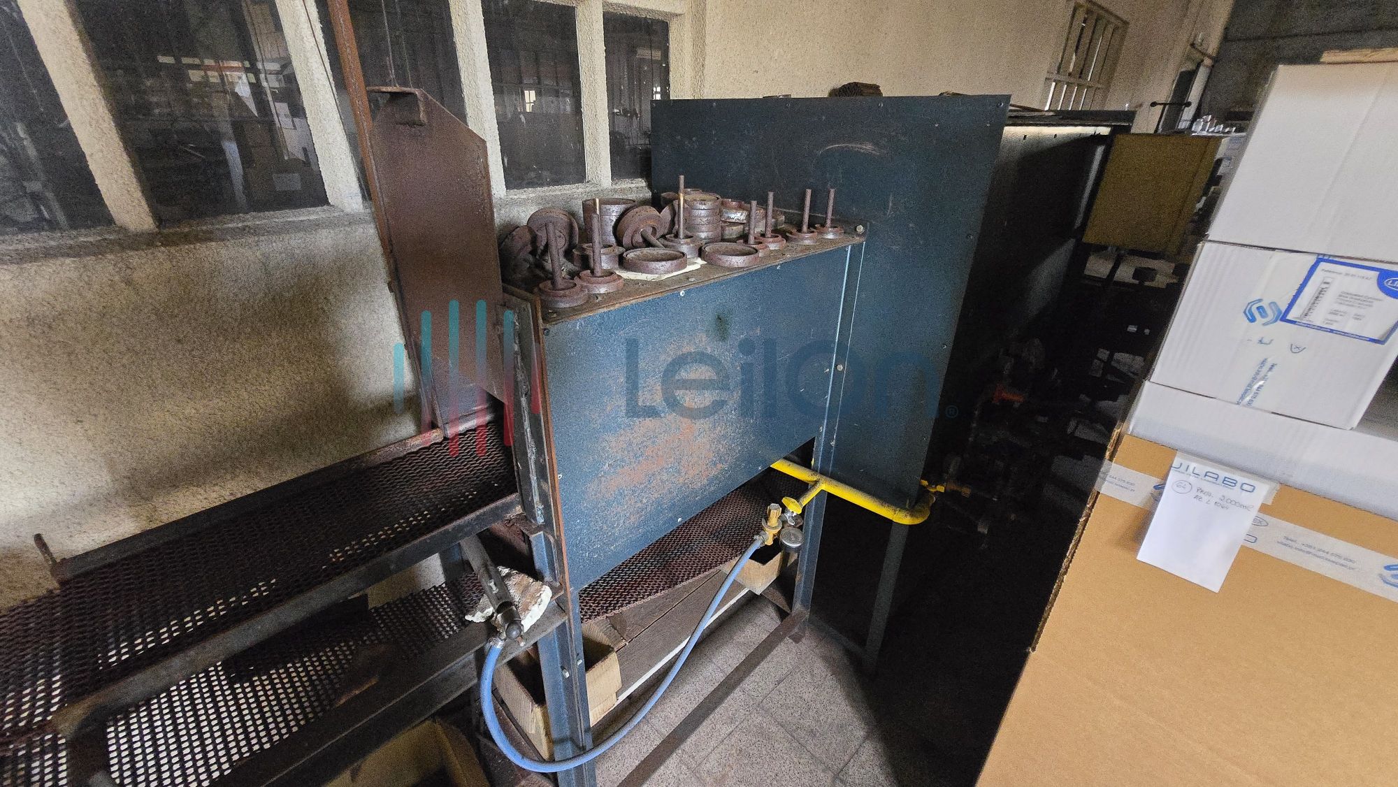 1 móvel de arquivo de 6 gavetas; 1 máquina de fazer tampas da marca “BOTTENFELD”; 1 máquina de afinar rodos da marca “LAHOZ”; 1 máquina de recozer balões volumétricos da marca “I.M.V.” do ano 2000; 1 mesa; 1 minicontentor de lixo; cerca de 36 metros de estantes; Lote com diverso material: 1 arca de recozimento cerca 10 mts.), 1 máquina de fazer pratos e vidros de relógio; 2 móveis de arquivo de 4 gavetas.