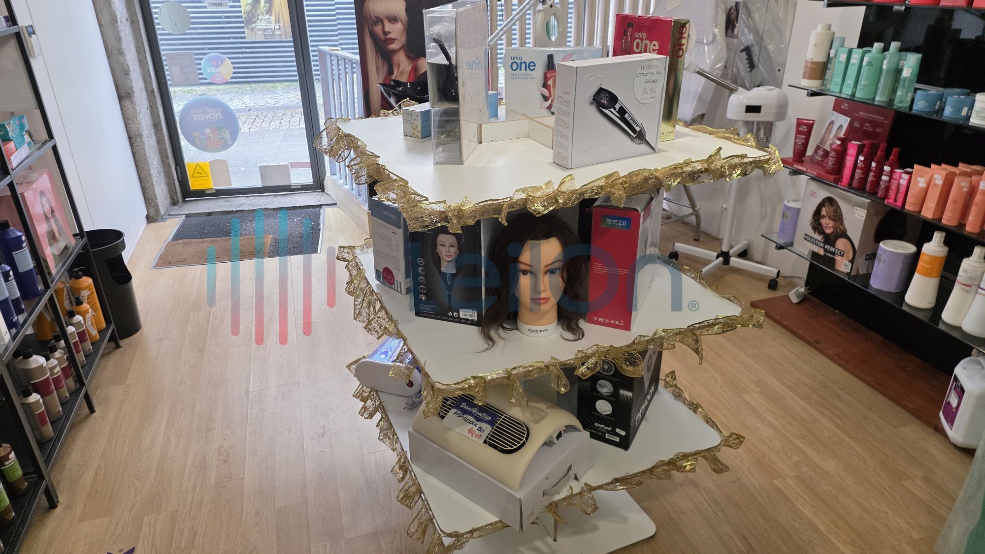 ✓ Produtos profissionais para cabeleireiros e esteticistas, incluindo ferramentas e mobiliário, tais como cerca de 7 catalisadores, 3 aspiradores de unhas, cerca de 29 máquinas de barbear/cortar cabelo, 3 panelas de cera, 4 modeladores, 7 aquecedores de roll-on, 1 secador de cabelo, 15 placas alisadoras, 1 lupa, 1 vaporizador da marca Ricky Parodi, 1 banco com rodas, 3 carrinhos de trabalho, 1 lavatório portátil, entre outros produtos.