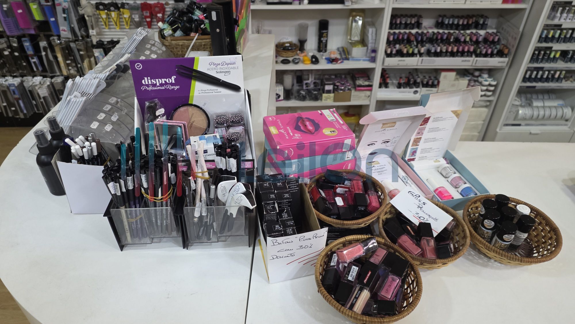 ✓ Equipamentos e acessórios de estética - pentes, ferramentas para unhas, acessórios capilares, rolos, pinças, alicates, corta unhas, espátulas, gel construtor, verniz gel, verniz, limas, brocas, descartáveis, pestanas, líquidos permanentes de pestanas de marcas como Andreia, Purple, produtos de maquilhagem tais como blenders, blushs, paletes de sombras, rimel, bases, primes, fixadores, bronzers, malas com kits de maquilhagem, sprays fixadores, primers, corretores, bronzers, etc.