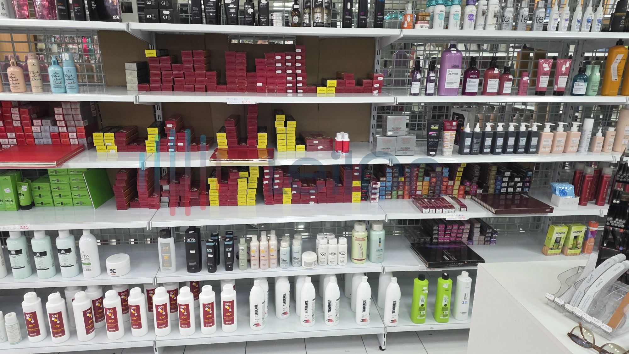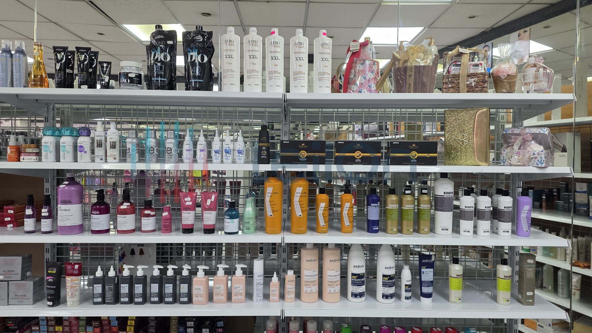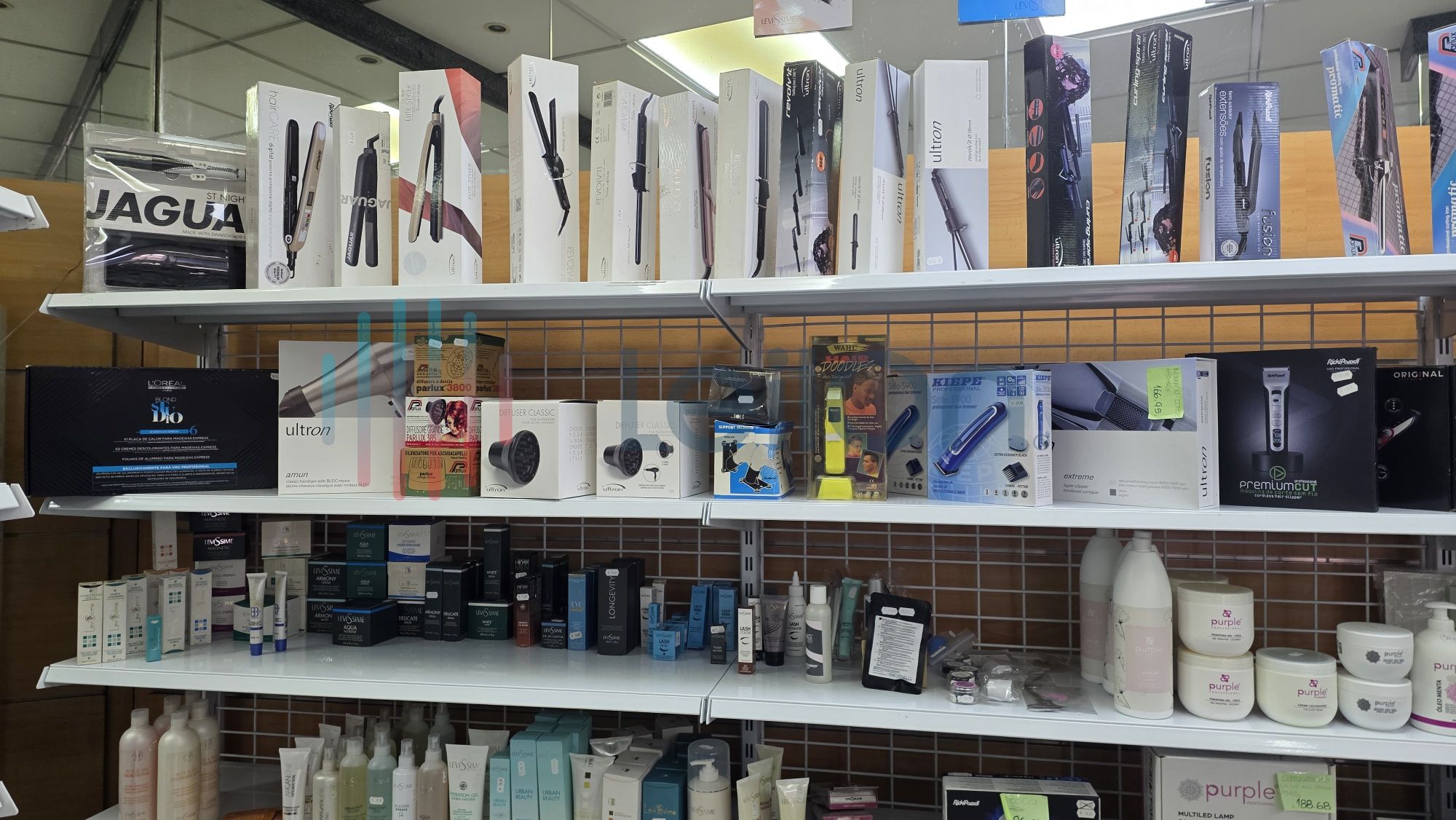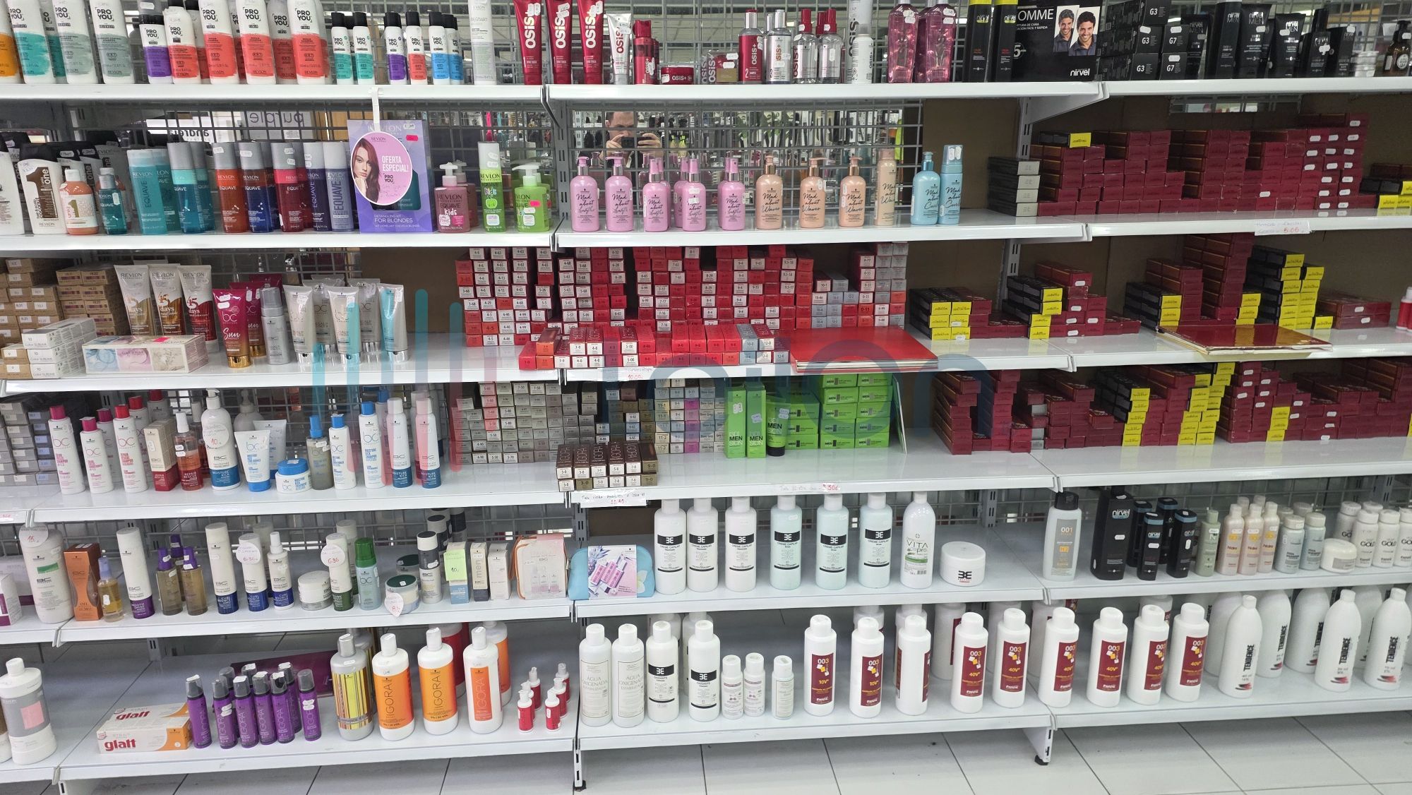 ✓ Produtos de cabeleireiro profissional — shampoos, cremes de tratamento, sprays, lacas, tintas, máscaras, finalizastes, oxidantes de diversas gamas e de marcas como Wella, Loreal, Novex, Kaypro, Rickiparodi, Andreia, Schwarzkopf, Revlon, OroFluido, etc.