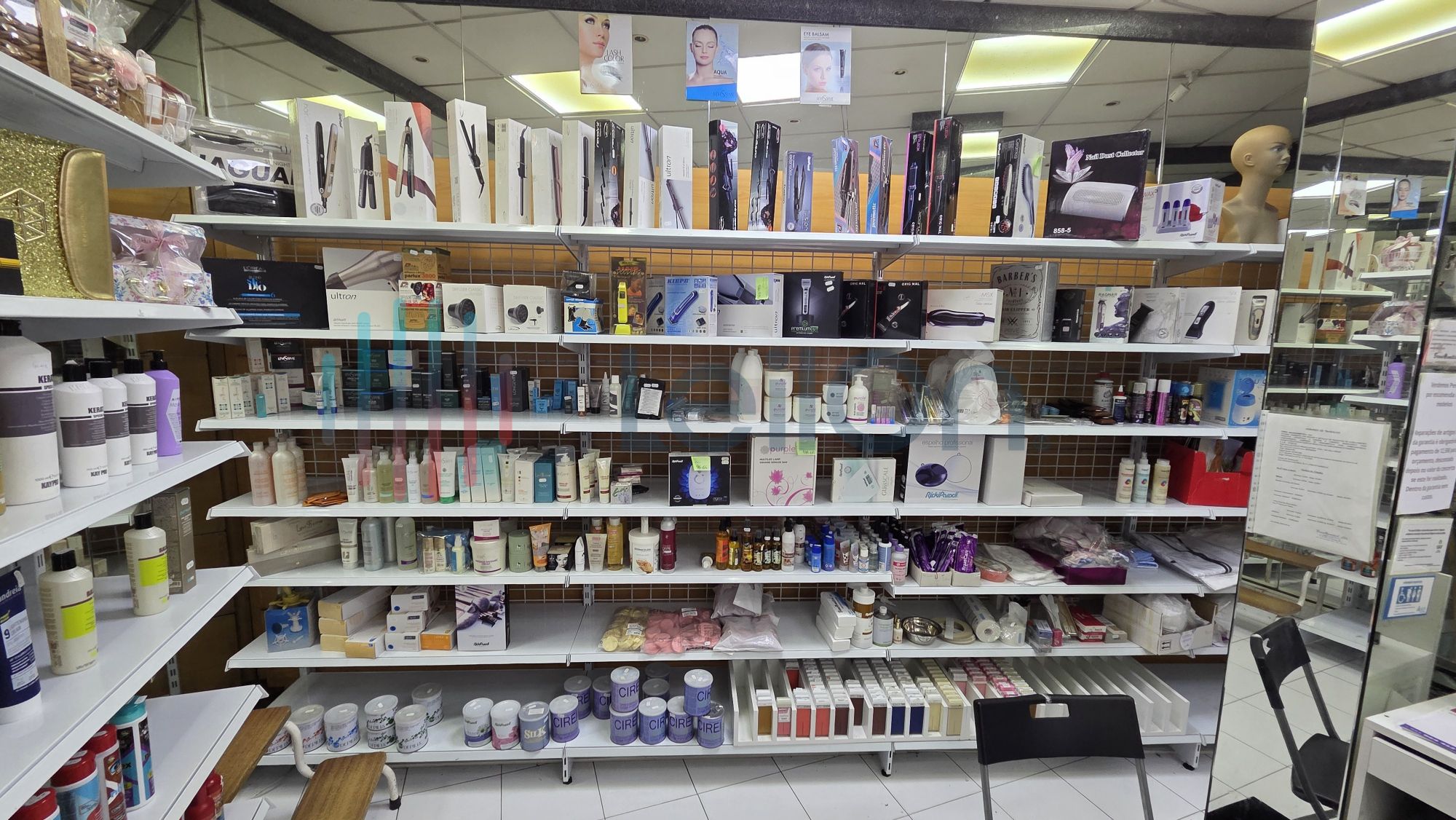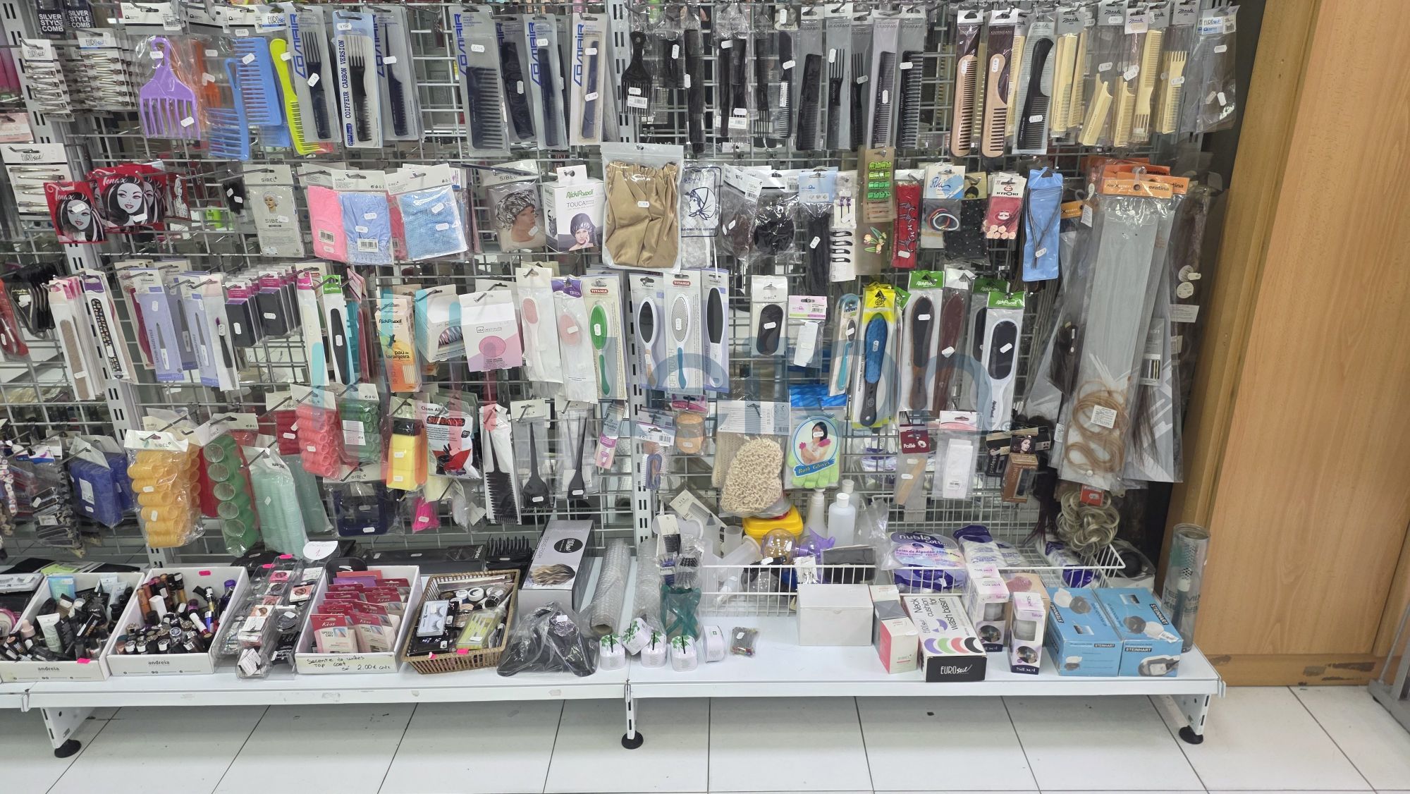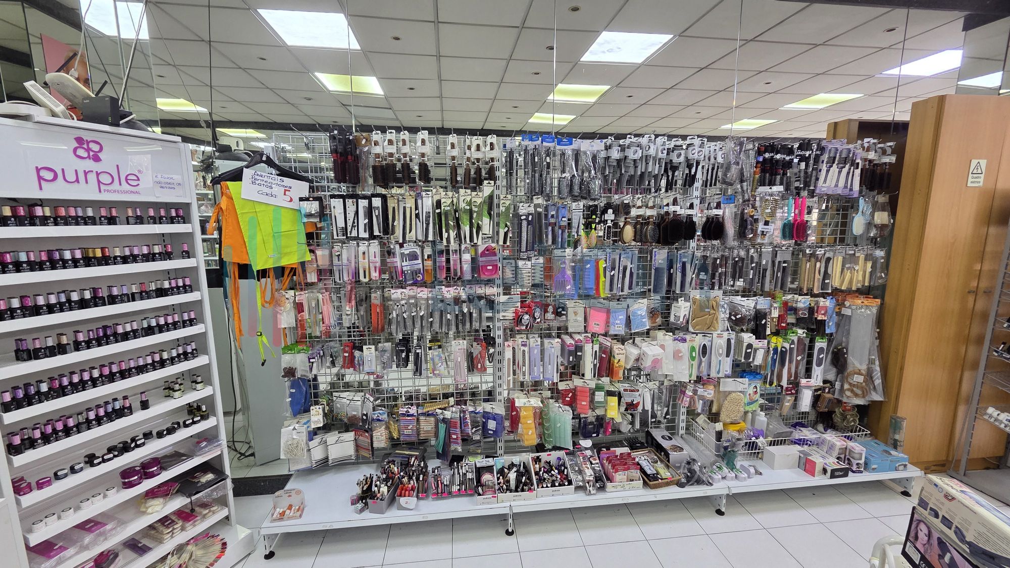 ✓ Equipamentos e acessórios de estética - pentes, ferramentas para unhas, acessórios capilares, alicates, rolos, pinças, gel construtor, verniz gel, verniz, limas, brocas, descartáveis, pestanas, líquidos permanentes de pestanas de marcas como Andreia, Purple, produtos de maquilhagem tais como blenders, blushs, paletes de sombras, rimel, bases, etc.