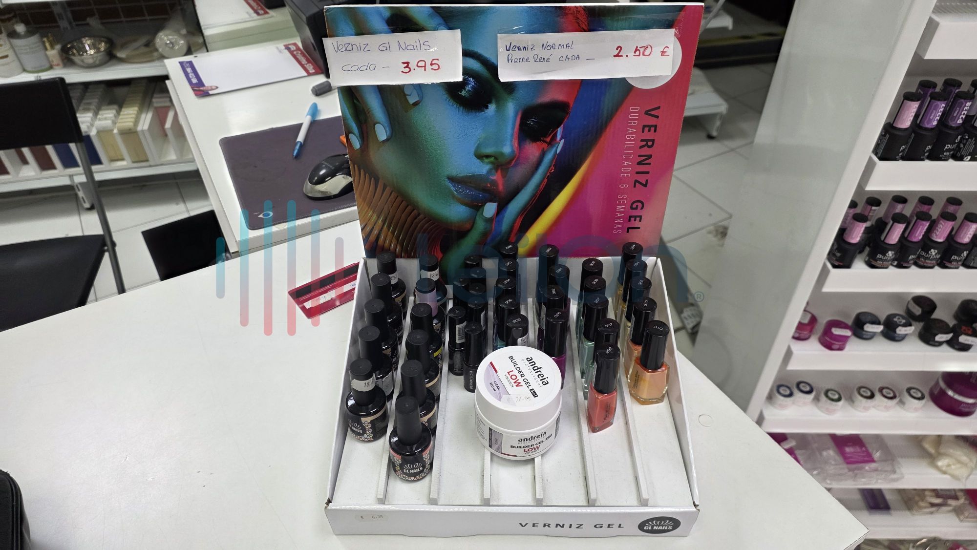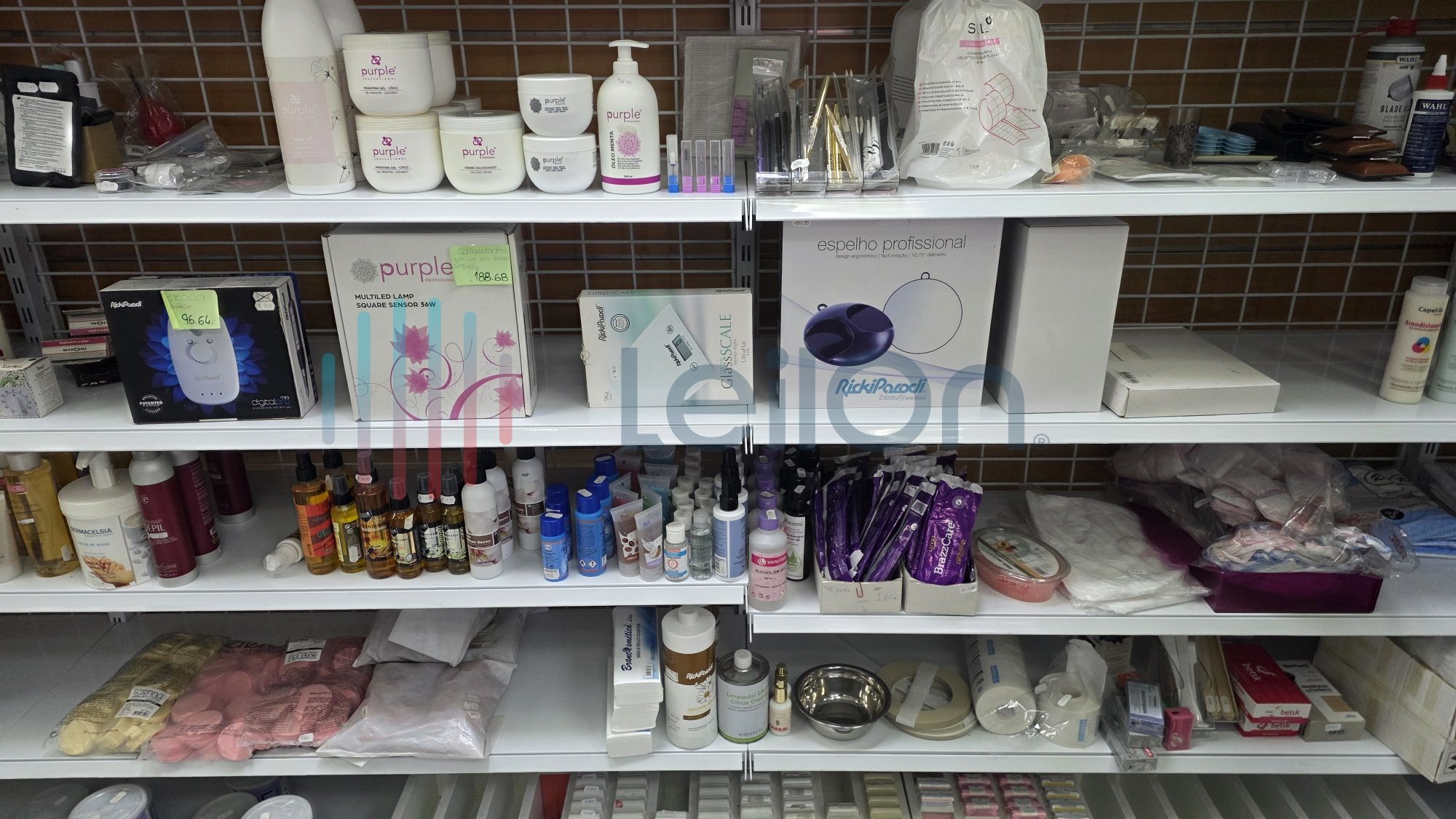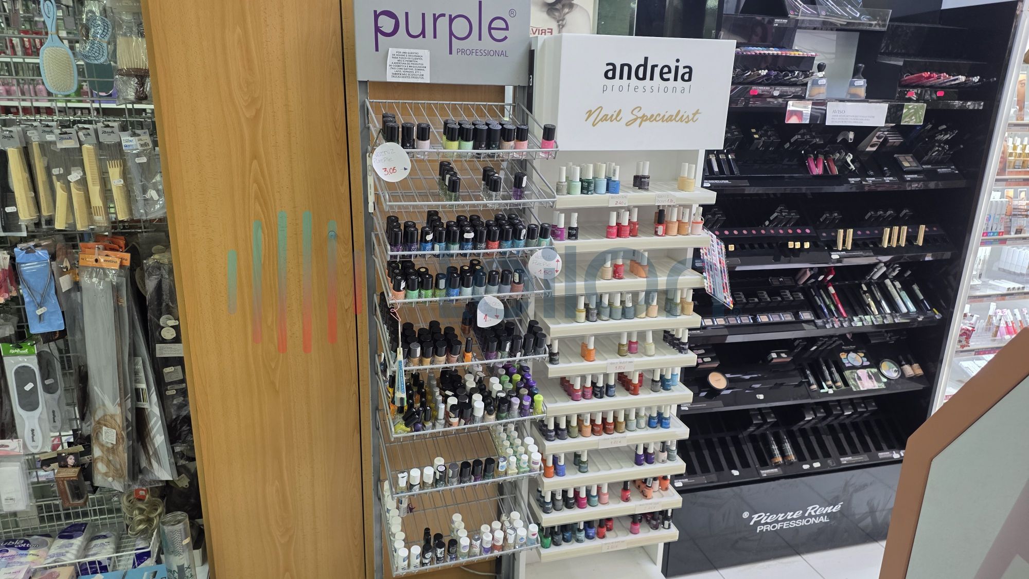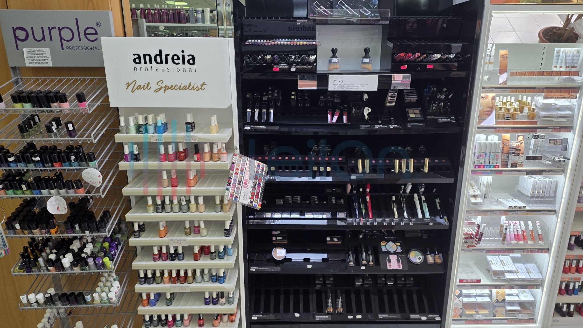 ✓ Equipamentos e acessórios de estética - pentes, ferramentas para unhas, acessórios capilares, alicates, rolos, pinças, gel construtor, verniz gel, verniz, limas, brocas, descartáveis, pestanas, líquidos permanentes de pestanas de marcas como Andreia, Purple, produtos de maquilhagem tais como blenders, blushs, paletes de sombras, rimel, bases, etc.