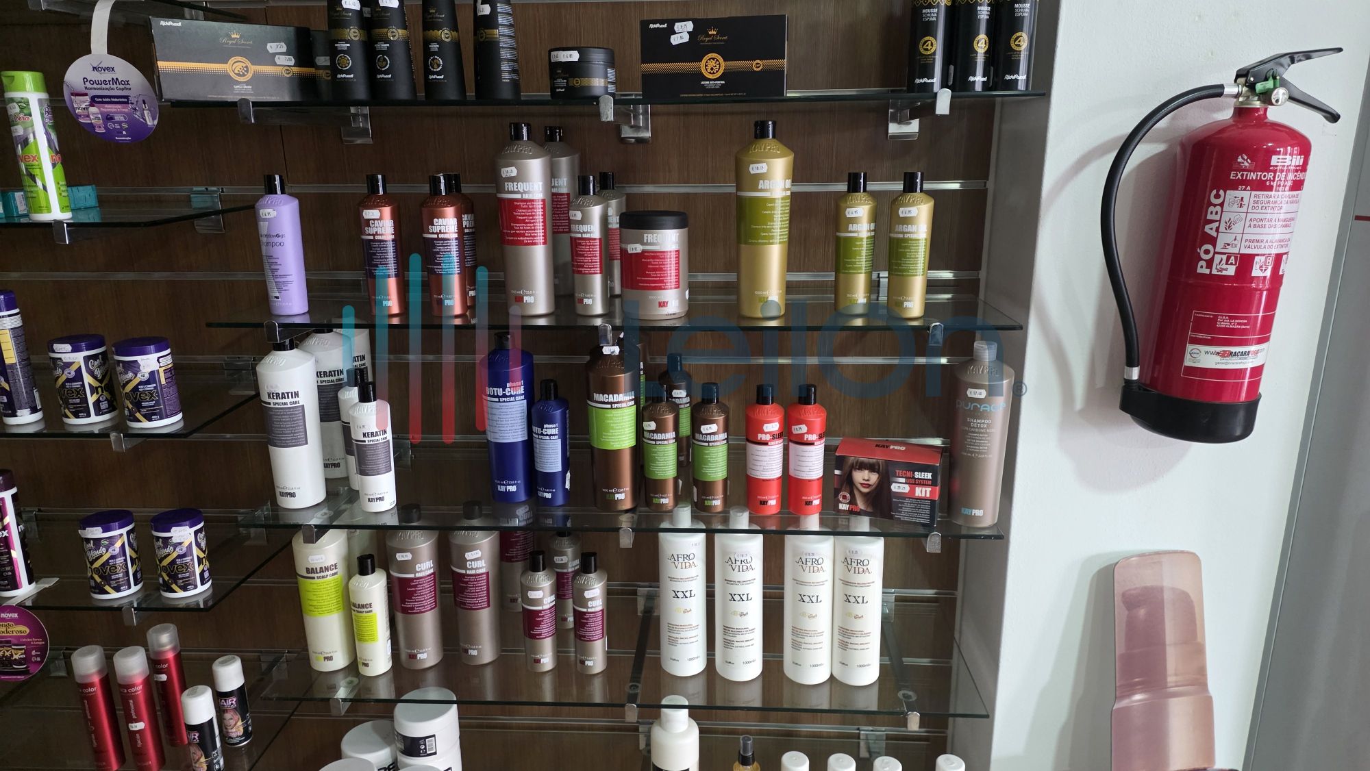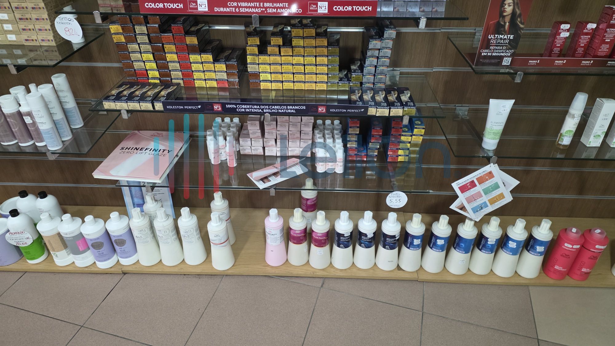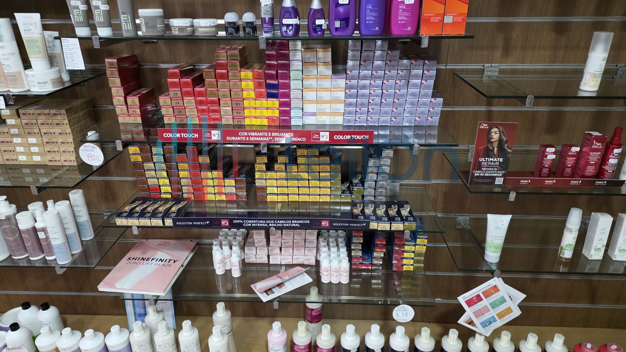 ✓ Produtos de cabeleireiro profissional — shampoos, cremes de tratamento, sprays, lacas, tintas, máscaras, finalizastes, oxidantes de diversas gamas e de marcas como Wella, Loreal, Novex, Kaypro, Rickiparodi, Andreia, Schwarzkopf, Revlon, OroFluido, etc.