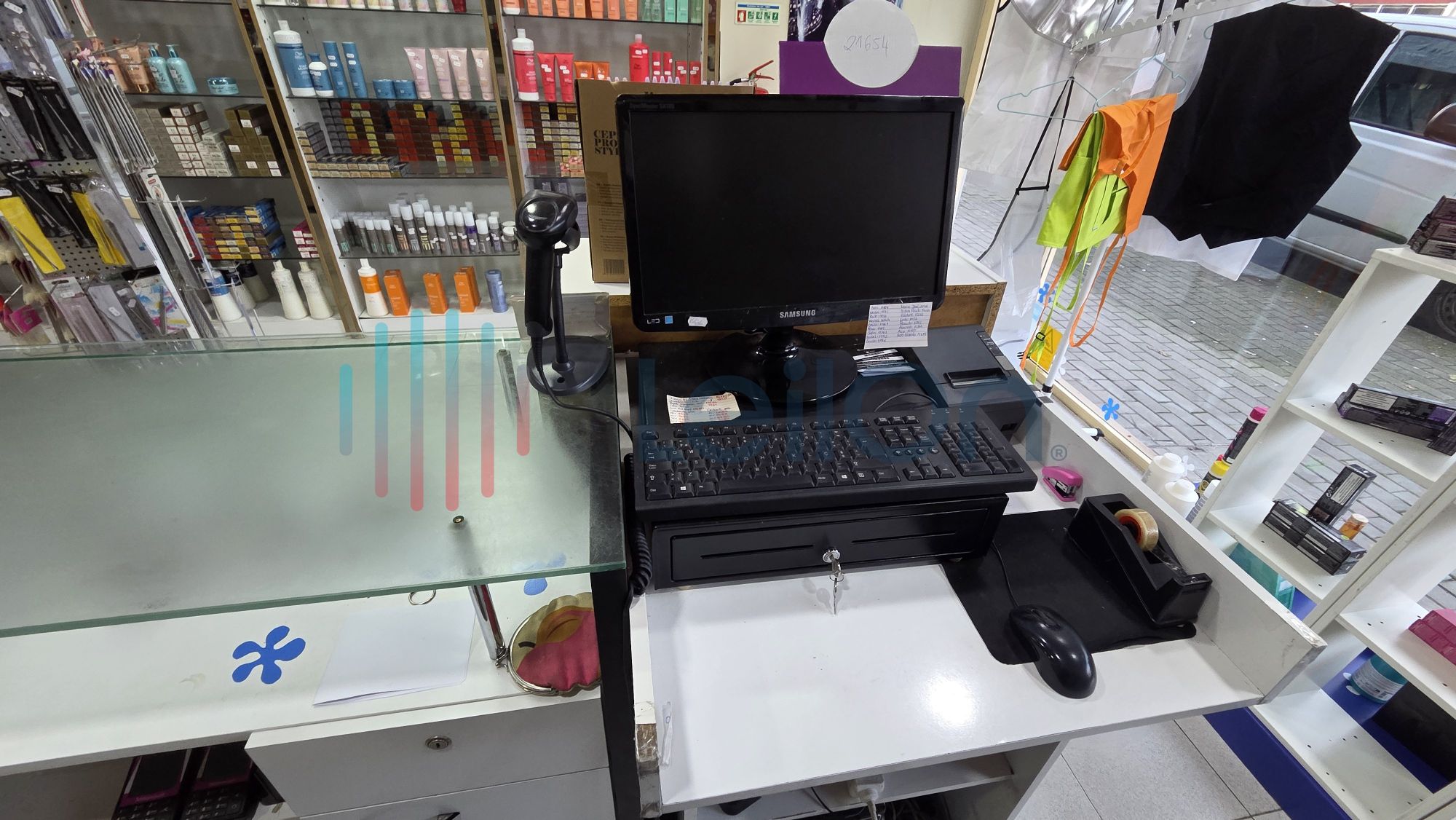 1 computador com monitor da marca Samsung, teclado e rato, 1 impressora de talões, 1 caixa registadora, 12 estantes prateleiras com 6 prateleiras e 6 divisórias.