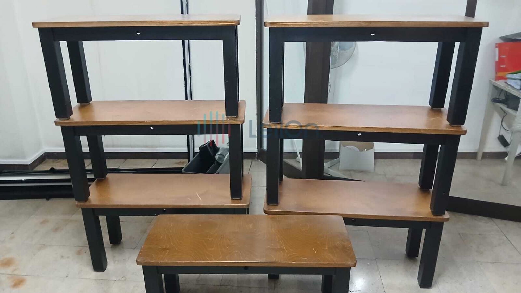 ✓ 4 mesas de madeira;